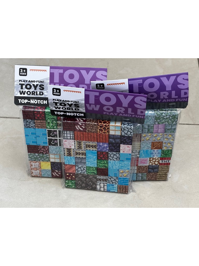 Потопете се в свят на безкрайно въображение с магнитния конструктор Build World – изберете от 48 до 336 части. Комплектът е вдъхновен от популярния пикселен стил на видеоигри като Minecraft и позволява на децата да създават собствени 3D светове – къщи, кули, водопади, дървета и цели сцени. Благодарение на вградените магнити, блокчетата се свързват лесно и стабилно, което прави строенето забавно и интуитивно дори за по-малки деца.