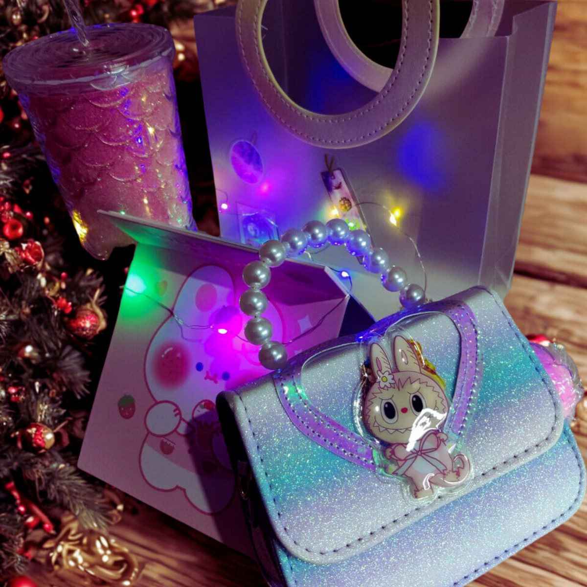 ✔ За фенове на сладки аксесоари, Kawaii стил, Labubu, блестящи чантички