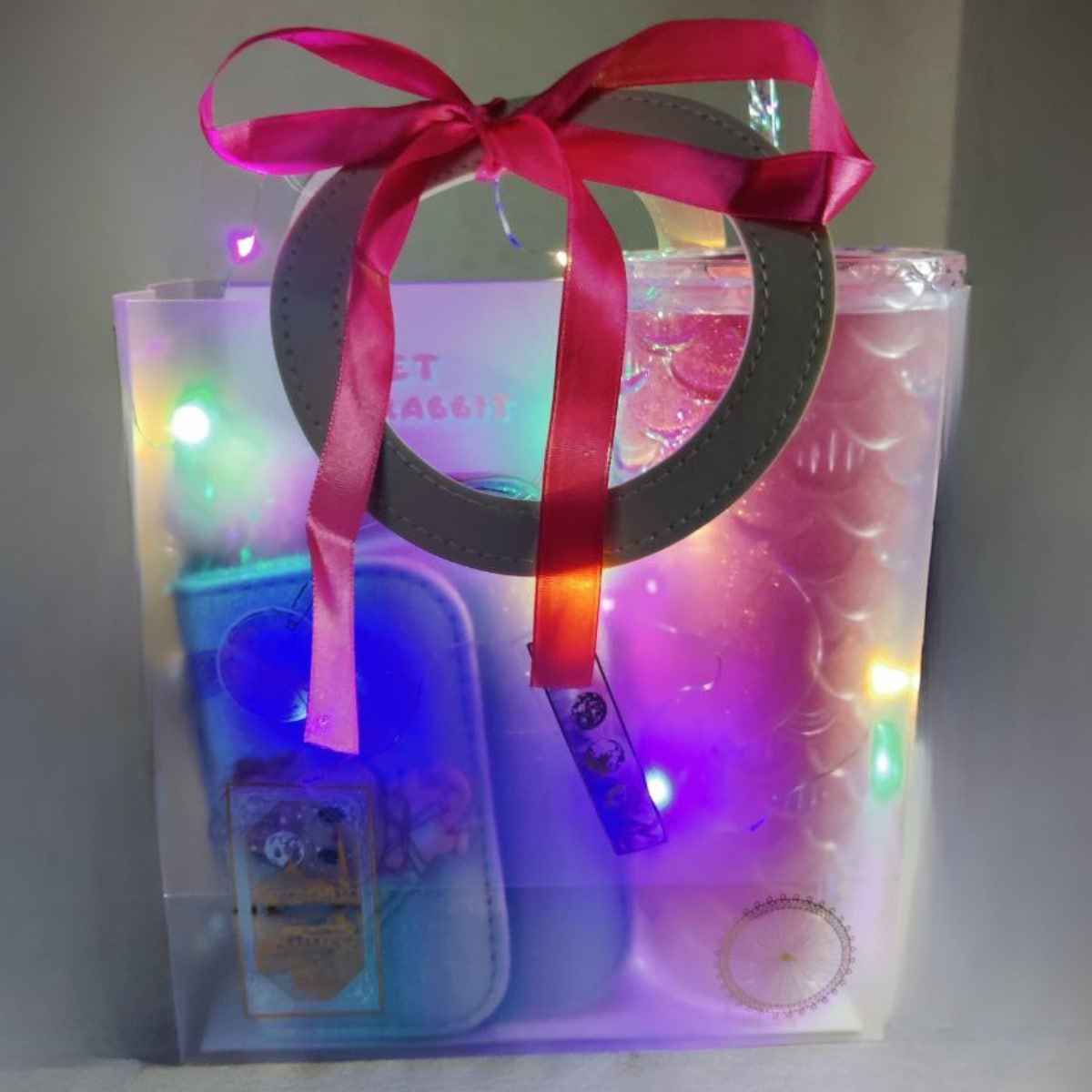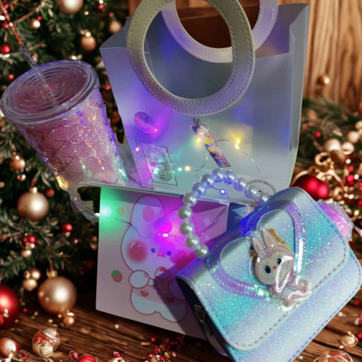 🎁 + Подаръчна чантичка с дръжки тип “пръстен” и декоративна панделка и декоративни лампички.