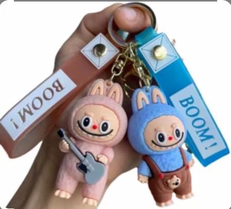Внеси настроение и стил в ежедневието си с тези очарователни ключодържатели с героите от Labubu! Всеки ключодържател идва с фигурка на Labubu в сладък костюм с ушички и мека силиконова лента с надпис BOOM!, която прави захващането удобно и ефектно.