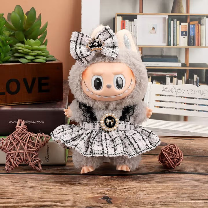 Запознай се с Лабубу – симпатичната и палавa фигурка, която ще грабне сърцето ти от пръв поглед! Облечена в очарователен аутфит, тази кукла комбинира уникалния чар на Лабубу с моден стил, който я прави още по-неустоима.