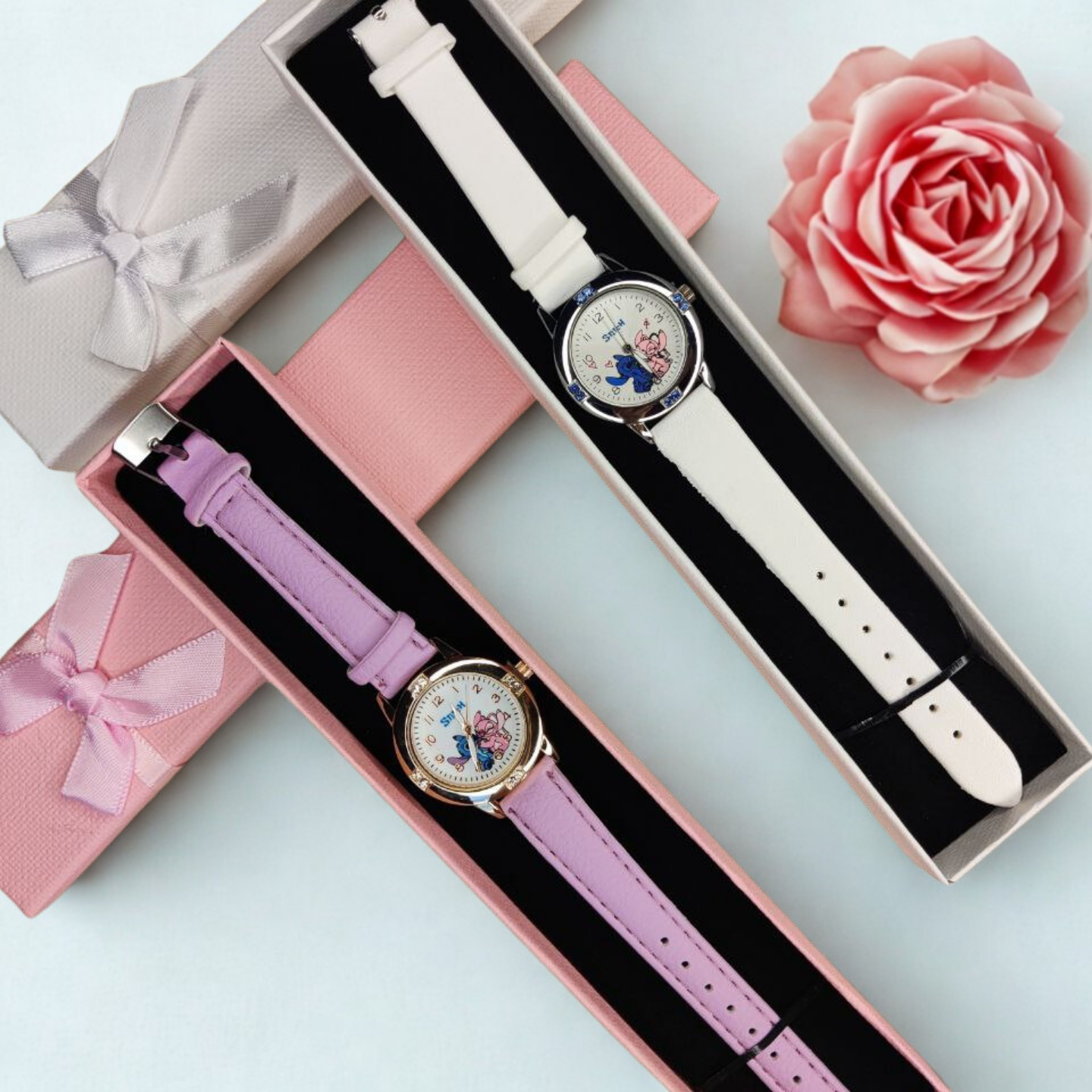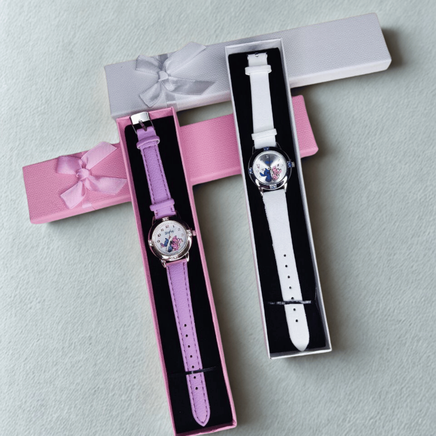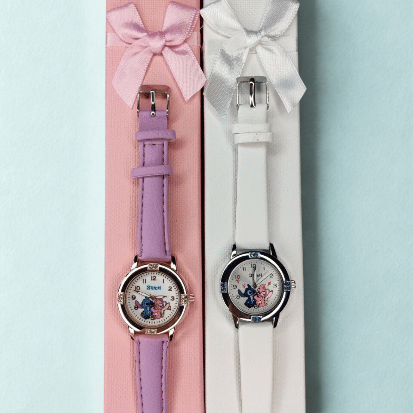 Стилен детски кварцов часовник с героите Stitch и Angel, който съчетава изящество и игрив чар в едно! Перфектен избор за всички почитатели на Дисни, които искат моден аксесоар с характер.
